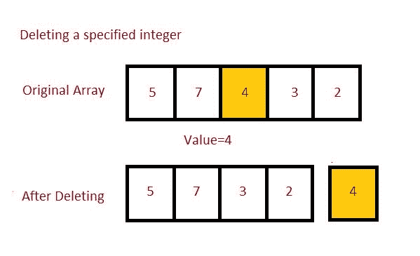 在这种方法中,我们将遍历所有元素,并将元素向左移动 1 个索引,只要找到要删除的元素。