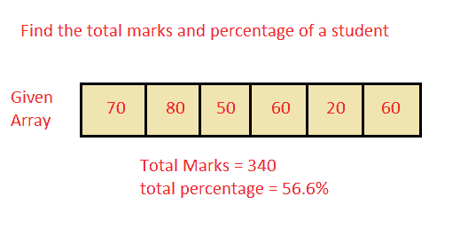 在本教程中,我们将学习如何将学生的分数接受到一维数组中,并找到总分数和百分比。但是在继续之前,如果您不熟悉数组的概念,那么请务必查看 Java 中的文章数组