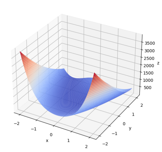 return 100.0 * (y - x ** 2.0) ** 2.0 + (1 - x) ** 2.0 # 以香蕉函数为例