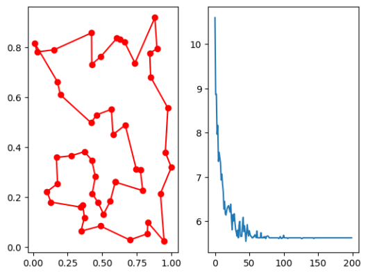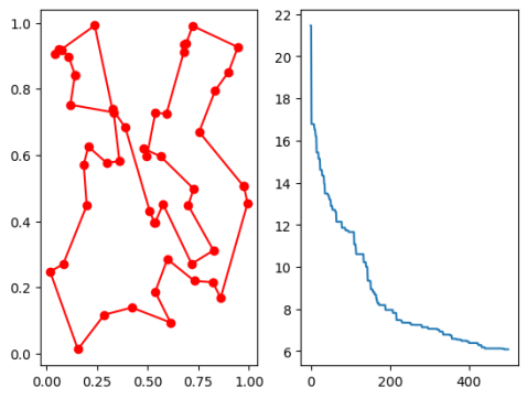 使用 sko 中提供的模拟退火算法接口解一个 TSP 问题的代码如下: