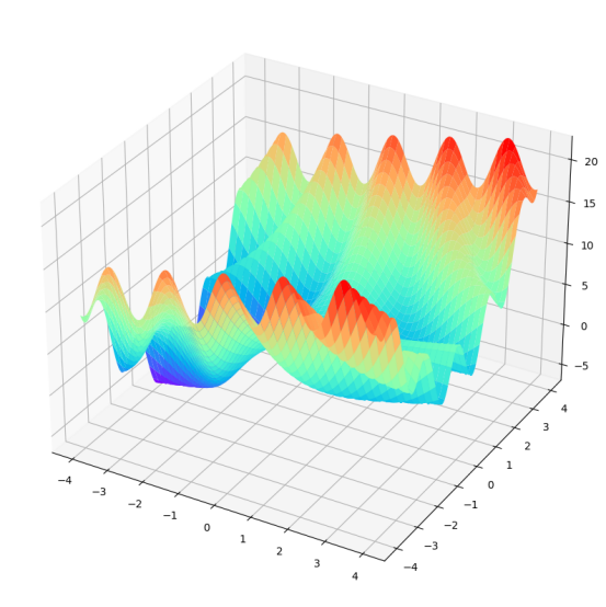 我们以一个二元函数的寻优为例介绍如何实现遗传算法。